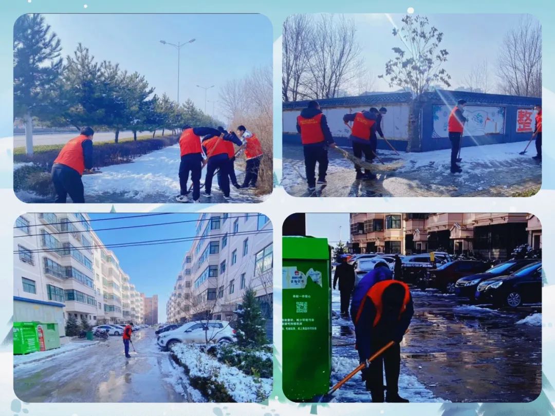 在物業小區、場內道路、道路交通、創城包抓共建區等地方,隨處可見一隊隊志愿者在清掃積雪。大家分工明確、默契配合,一次次掄起掃帚、鐵锨、鐵鏟,與地面的摩擦聲此起彼伏,奏響一首掃雪除冰進行曲,一個個普通的身影在冰雪中顯得格外溫暖,形成了一道靚麗的文明風景線。