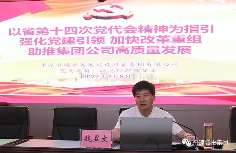 黨課講授現場,魏顯文圍繞貫徹學習省第十四次黨代會精神、國有企業高質量發展、加快集團公司改革重組、打造城市資源綜合應用商等方面,為在場黨員講了一堂生動的黨課。