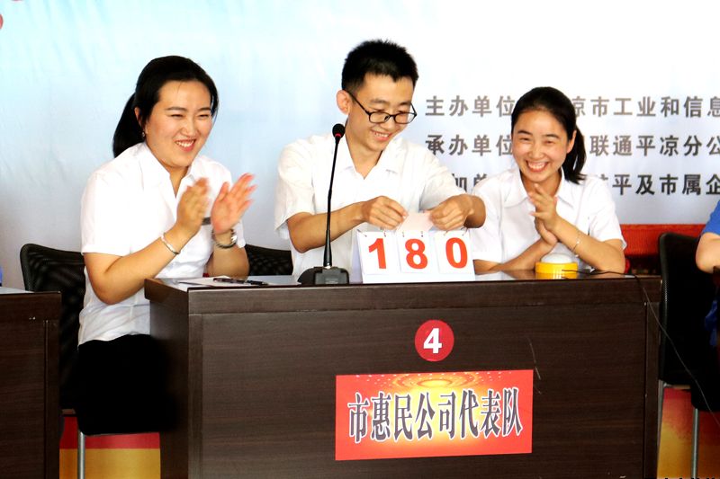 7月20日下午,平涼市“中小企業促進會杯”暢談十八大·喜迎十九大電視知識競賽中省駐平及市屬企業賽區比賽在聯通公司會議室圓滿結束,代表我公司參賽的員工張石晶、劉婕、魏靜、孟靖洋冷靜應戰,配合默契,高水平發揮,最終以220分的好成績取得中省駐平及市屬企業賽區第一名,榮獲賽區一等獎,順利進入全市復賽。