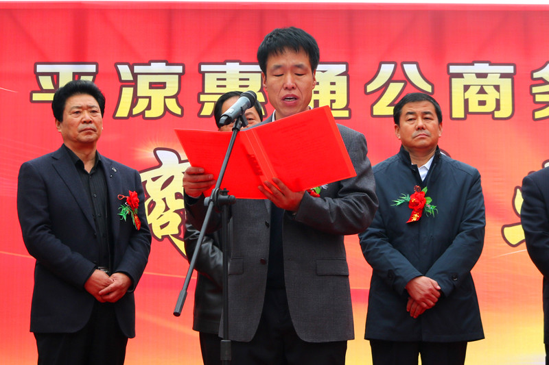 慶典活動上,平涼市城鄉建設投資有限責任公司副總經理、平涼惠通公商務用車服務有限公司董事長魏顯文就公司開業正式運營致辭,市發改委副調研員朱強、平涼市級機關公務用車服務中心主任牛彥平分別代表市車改領導小組辦公室、市機關事務管理局講話,向公司開業表示祝賀。平涼市城鄉建設投資有限責任公司黨委書記、董事長馬千里,甘肅東部運輸集團有限責任公司黨委書記、董事長胡高曉為平涼惠通公商務用車服務有限公司揭牌。