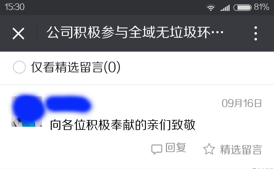 惠民公司全體員工無私貢獻,為城市綠色整潔所付出的善行義舉也被社會各界群眾所稱贊,紛紛點贊支持。有網友在筆者朋友圈留言:“惠民公司處處體現惠民平涼人民”,還有網友在惠民公司微信公眾號留言:“向各位積極奉獻的親們致敬”。