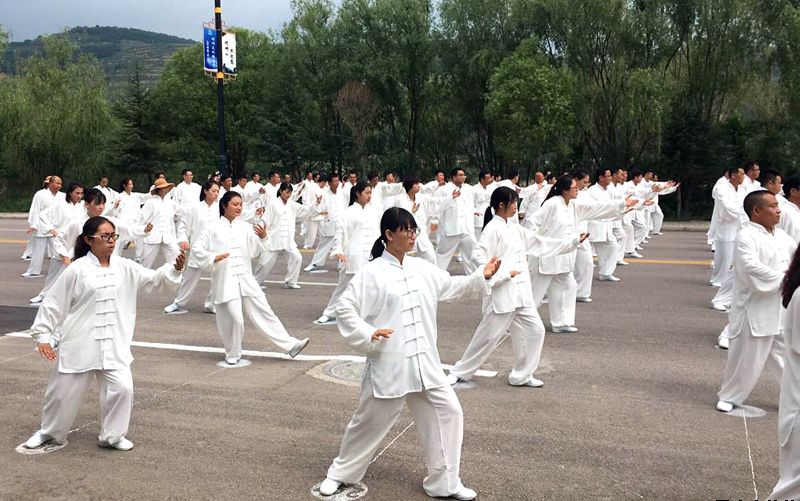 7月21日上午,第三屆絲綢之路(敦煌)國際文化博覽會平涼分會場——2018年平涼·崆峒文化旅游節暨“弈決崆峒”世界道教名山圍棋邀請賽啟動儀式后,萬人太極拳集體及方隊展演活動在崆峒古鎮舉辦,公司組織100名太極拳愛好者參加展演。