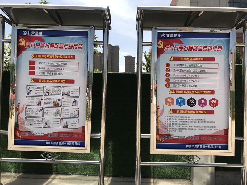 御景華府、平?jīng)鲆恢行滦^(qū)、惠民大廈三個工地現(xiàn)場采取宣傳欄、電子顯示屏、懸掛條幅、公布舉報電話及各種會議,大力宣傳打贏“掃黑除惡”專項斗爭的重大意義。讓參建各方深入了解建筑工地常見的屬于重點打擊范圍的黑惡勢力的情形,深刻認識到黑惡勢力對社會和諧穩(wěn)定的危害,并做到不參與黑惡勢力,不做涉黑涉惡的行為。