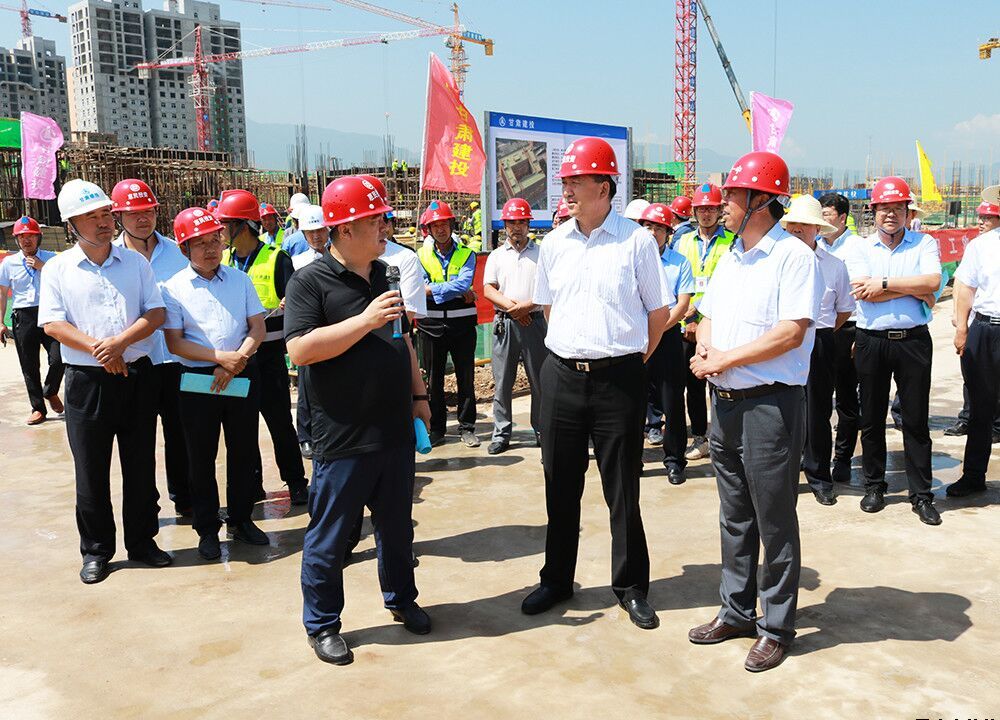 8月7日,全市項目觀摩督查第一組蒞臨崇文書苑小區一期(配建平涼一中新校區)建設項目工地,現場觀摩督查項目建設情況。省政協副主席、平涼市委書記郭承錄,市人大常委會主任李雪峰,市委常委、崆峒區委書記陳鐸,市委常委、組織部部長符紅斌,市委常委、市紀委書記何東,市政府副市長宋全科,市政協副主席邢建軍,市委秘書長李誠,以及崆峒區政府、市發改、工信、財政、交通、文旅、統計、扶貧辦等單位主要負責人實地觀摩平涼一中新校區建設項目,市惠民公司黨委書記、董事長唐常寧,黨委委員、總經理胡紅訓,副總經理馬新平,總工程師高健及黨委辦(辦公室)、房產公司負責人陪同觀摩。