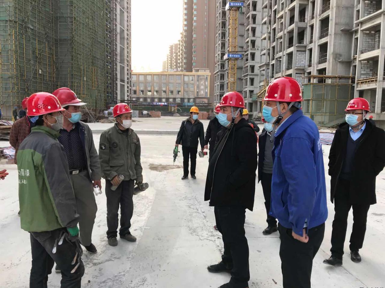 唐董事長一行先后深入平?jīng)鲆恢行滦^(qū)、御景華府工地,現(xiàn)場檢查了出入口人員信息登記流程、留觀室、疫情防控登記臺(tái)賬等資料,對(duì)防疫物資儲(chǔ)備和衛(wèi)生間、食堂、宿舍等重點(diǎn)區(qū)域消毒措施落實(shí)情況進(jìn)行了查看,并認(rèn)真聽取了相關(guān)負(fù)責(zé)人就疫情防控工作安排落實(shí)情況及復(fù)工復(fù)產(chǎn)安排的匯報(bào)。