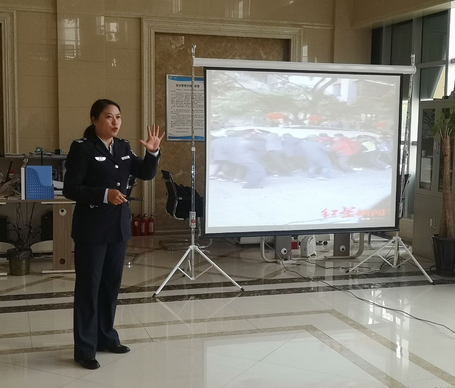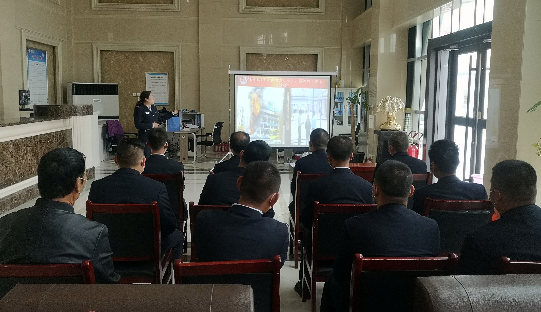 朱教官以圖文并茂、新聞報道、故事分析、現場說法的方式,講解了近年發生的多起重大火災故事以及近期發生的一些大小火災故事的實例視頻,觸目驚心的畫面和數字使全體參訓人員的心靈受到了極大的震撼,深刻認識到了“隱患險于明火,防范勝于救災”的重要性。