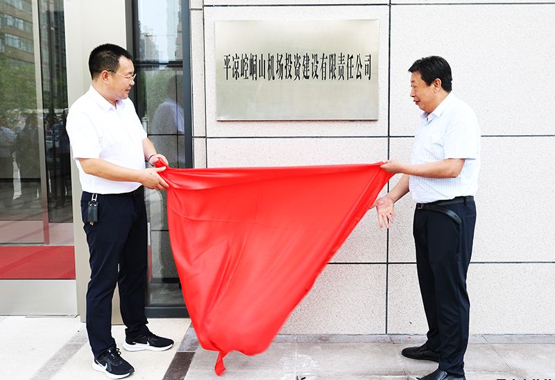 7月16日上午9時,機場公司正式揭牌成立,揭牌儀式在惠民大廈舉行。平涼城鄉投公司(惠民公司)黨委委員、總經理胡紅訓,副總經理魏顯文、王徐周、鄭忠軍、柳振源,總工程師高健,總經濟師王國太參加揭牌儀式并揭牌。