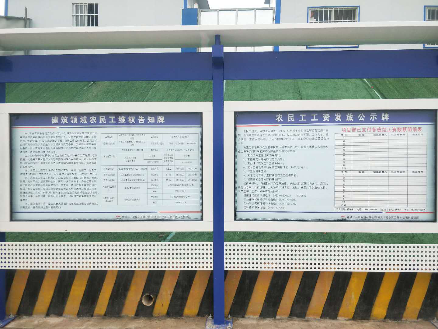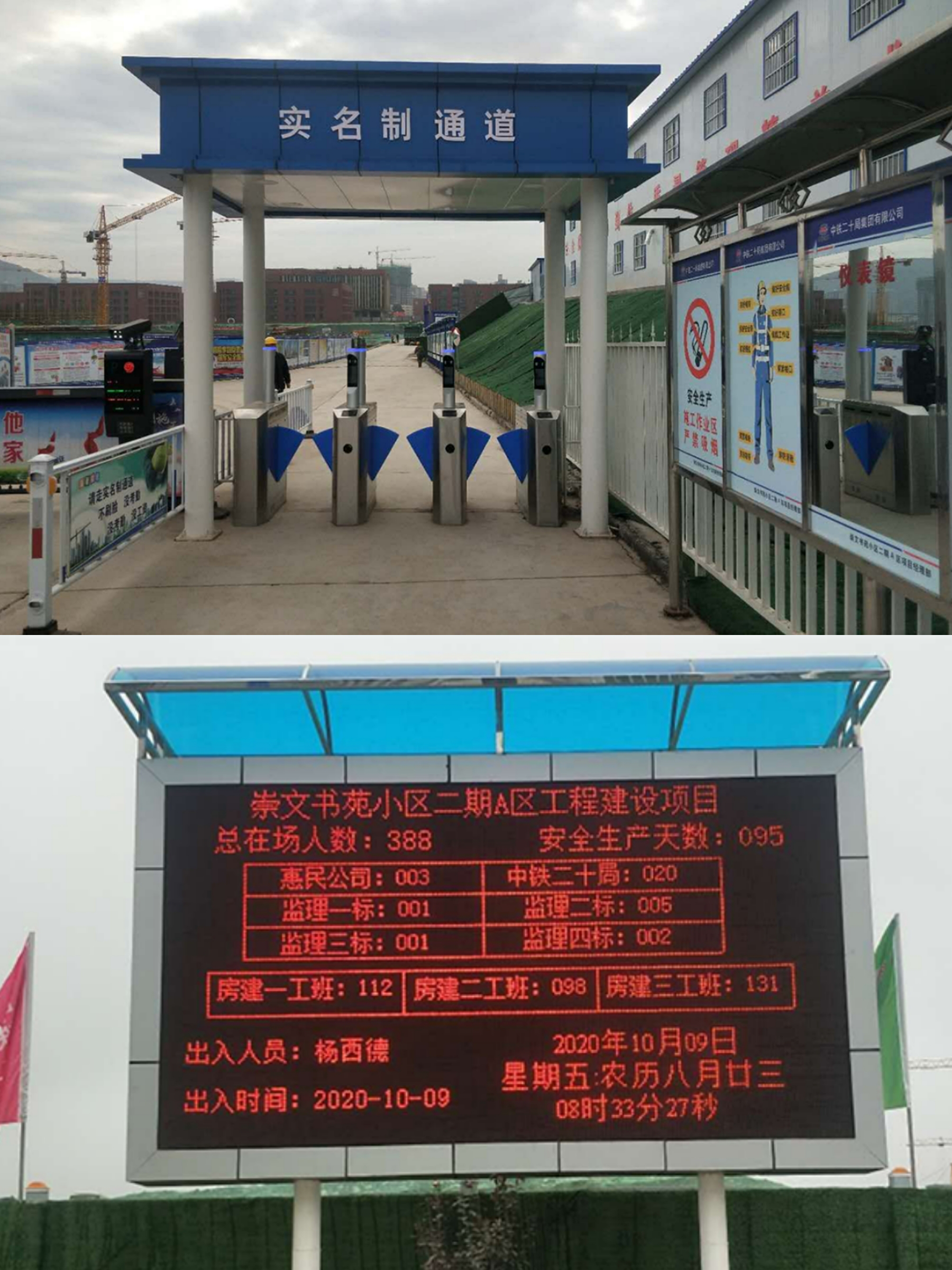 農(nóng)民工信息實(shí)名制登記:嚴(yán)格完善門禁管理系統(tǒng),建立人員實(shí)名制通道及人臉識別系統(tǒng),工資發(fā)放公示欄及勞動者權(quán)益保護(hù)欄。