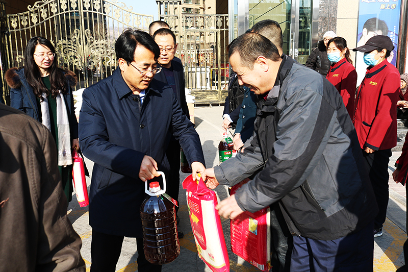 2月8日,市惠民公司黨委委員、總經(jīng)理胡紅訓(xùn),副總經(jīng)理王徐周、鄭忠軍、馬新平、王彥彥分組帶領(lǐng)黨委辦(辦公室)和工會(huì)負(fù)責(zé)人深入惠通公司、新城國際物管站、柳湖路苗圃、新北嘉園物管站、惠民花園物管站、市委市政府物業(yè)服務(wù)中心、法院物業(yè)服務(wù)中心、平?jīng)鲑e館立體停車庫、惠民大廈物業(yè)服務(wù)中心,看望、慰問了疫情防控和春節(jié)期間堅(jiān)守崗位的一線職工,向他們送去了慰問品和新年祝福。