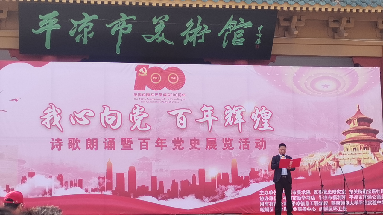 為慶祝中國共產黨建黨100周年,回顧黨的光輝歷程,謳歌黨的豐功偉績,引導平涼城鄉投(惠民)公司黨員、職工深刻了解黨的光輝歲月、感悟黨的初心使命、領會黨的創新理論、傳承黨的紅色基因。5月12日,市城鄉投資公司黨委受東關街道寶塔社區、平涼市美術館、區委黨史研究室聯合邀請,組織機關第一黨支部、機關第二黨支部、惠通公司黨支部、物業公司黨支部、文化傳媒公司黨支部、綠化公司黨支部、供應鏈管理公司黨支部共同開展“我心向黨 百年輝煌”詩歌朗誦暨百年黨史展覽活動。