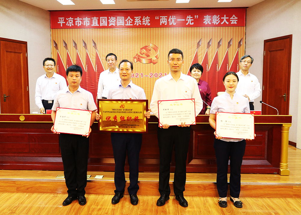 平涼城鄉投(惠民)公司融資部部長耿偉同志榮獲“優秀共產黨員”榮譽稱號;惠通公司黨支部榮獲“先進基層黨組織”榮譽稱號;黨委辦(辦公室)副主任萬新田、物業公司職員朱卉、停車場公司職員張永勇3名同志分別獲得“賡續紅色血脈,爭當服務先鋒”演講比賽二等獎、三等獎、優秀獎;總經理助理、規劃發展部部長馮永明,黨委辦(辦公室)職員馬蕊分別獲得市政府國資委黨史學習教育知識測試二等獎、三等獎。平涼城鄉投(惠民)公司黨委被市政府國資委黨委表彰為市直國資國企系統黨史學習教育知識測試“優秀組織獎”。