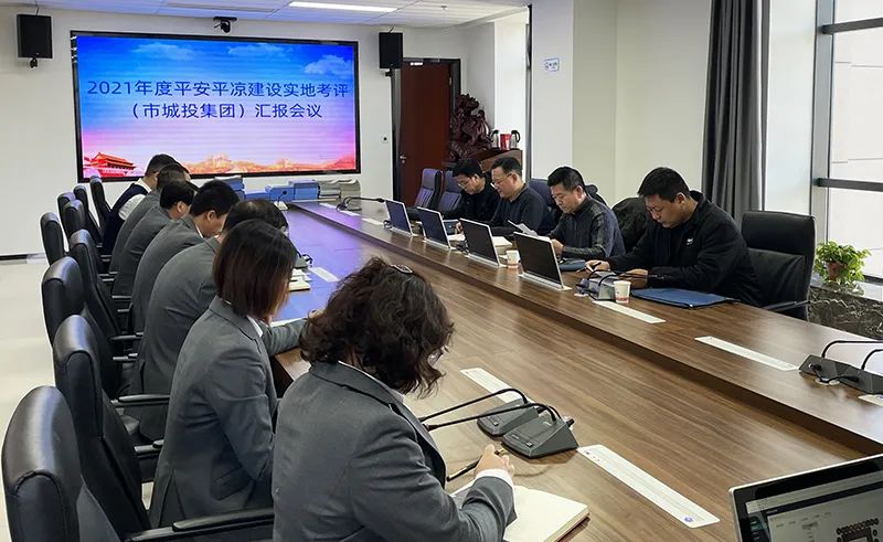 在考核匯報會上,公司副總經理馬新平全面匯報了2021年度平安平涼建設工作情況??荚u組一行對照考核細則,通過聽取匯報、查閱資料、現場查看等方式,對平涼城投集團2021年平安平涼建設責任制落實、工作開展、內部安全防范措施落實、企業安全管理制度落實和企業維護社會穩定工作情況進行了深入全面的檢查考評。