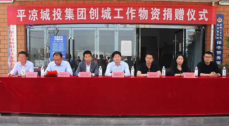 5月6日,平涼城投集團創城工作物資捐贈儀式在保豐村和陽小區舉行。公司黨委委員、副總經理魏顯文出席儀式,柳湖鎮黨委副書記陶彥沛主持捐贈儀式并致辭,市政協辦公室副主任梁天鵬,柳湖鎮分管領導,保豐村黨支部書記,黨委辦(辦公室)、合同預算部、事務中心負責人及創城志愿者共計50余人參加儀式。