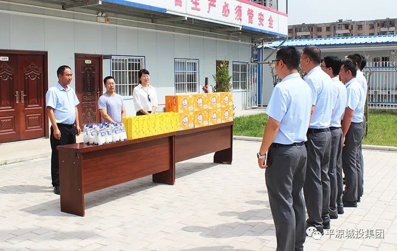 為做好高溫酷暑期間的防暑降溫工作,進一步傳遞集團公司對一線職工的關愛,7月26日,受公司黨委委員、總經(jīng)理胡紅訓委托,公司副總經(jīng)理王徐周、鄭忠軍、馬新平、王彥彥分組帶領黨委辦(辦公室)、工會工作人員,前往房產公司涇河流域治理、崇文書苑二期建設項目工地,物業(yè)公司所屬市委、市政府、市中級法院、區(qū)法院、惠民大廈、御景華府物業(yè)服務中心,停車場公司封閉停車場,向奮戰(zhàn)在一線的96名工作人員送去慰問,并將公司準備的慰問品送到他們手中。
