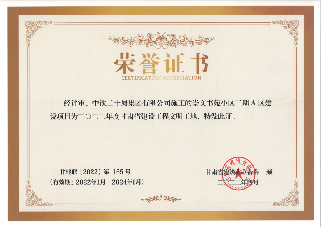 近期,集團公司下屬房產公司開發建設的崇文書苑二期建設項目榮獲2022年度省級文明工地榮譽稱號。