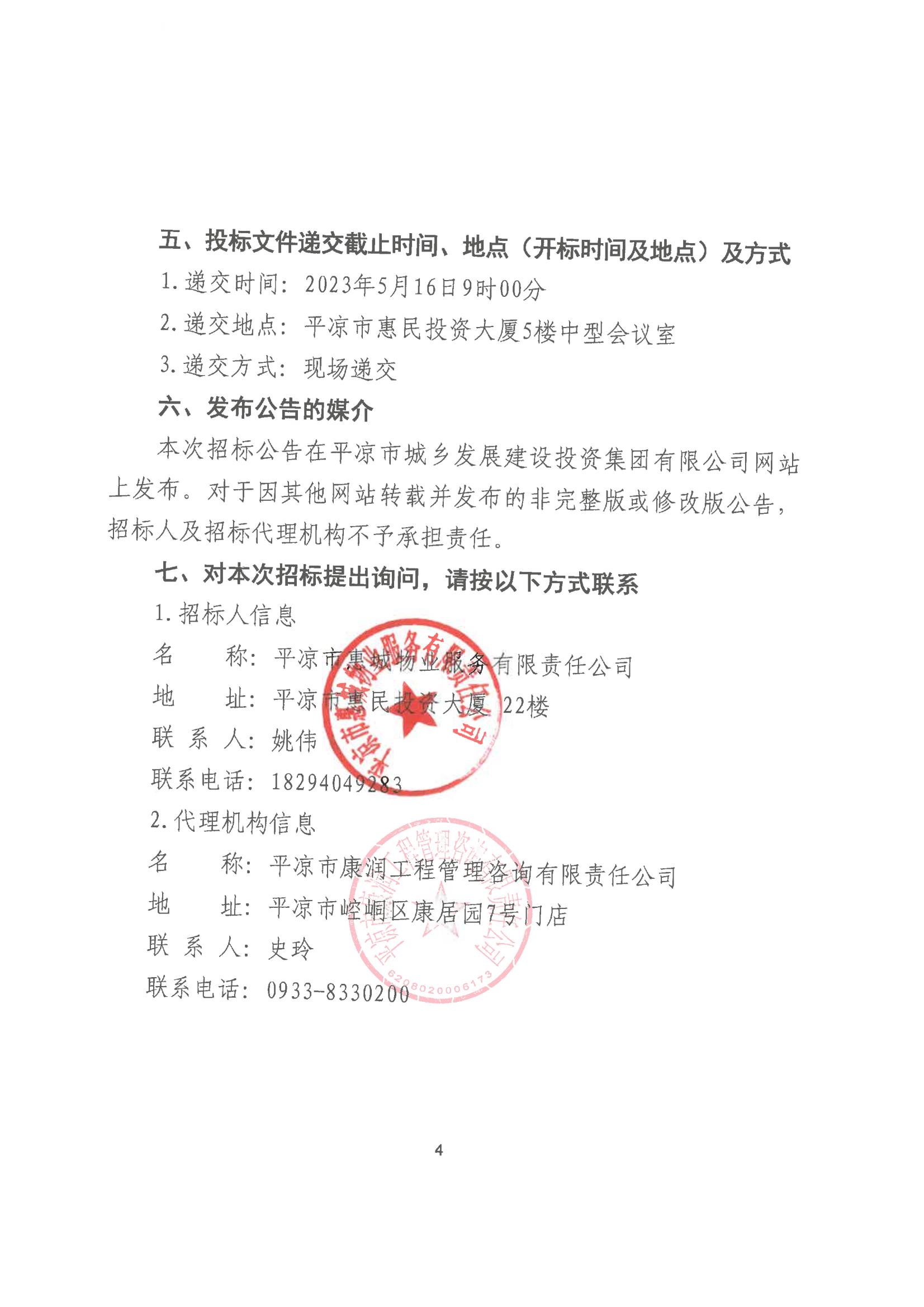 平涼市惠城物業服務有限責任公司食材供應商入圍項目招標公告